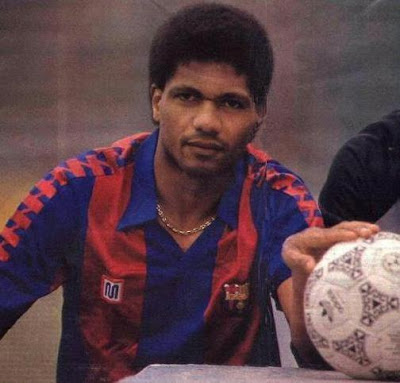 Em cima, recordámos alguns momentos da passagem de Aloísio por Barcelona: com Johan Cruyff no dia da sua apresentação (1ª foto) e ao lado do guarda-redes camaronês Thomas N’Kono, a promover para a imprensa espanhola um sempre escaldante derby catalão entre o Espanhol e o Barcelona (3ª foto).